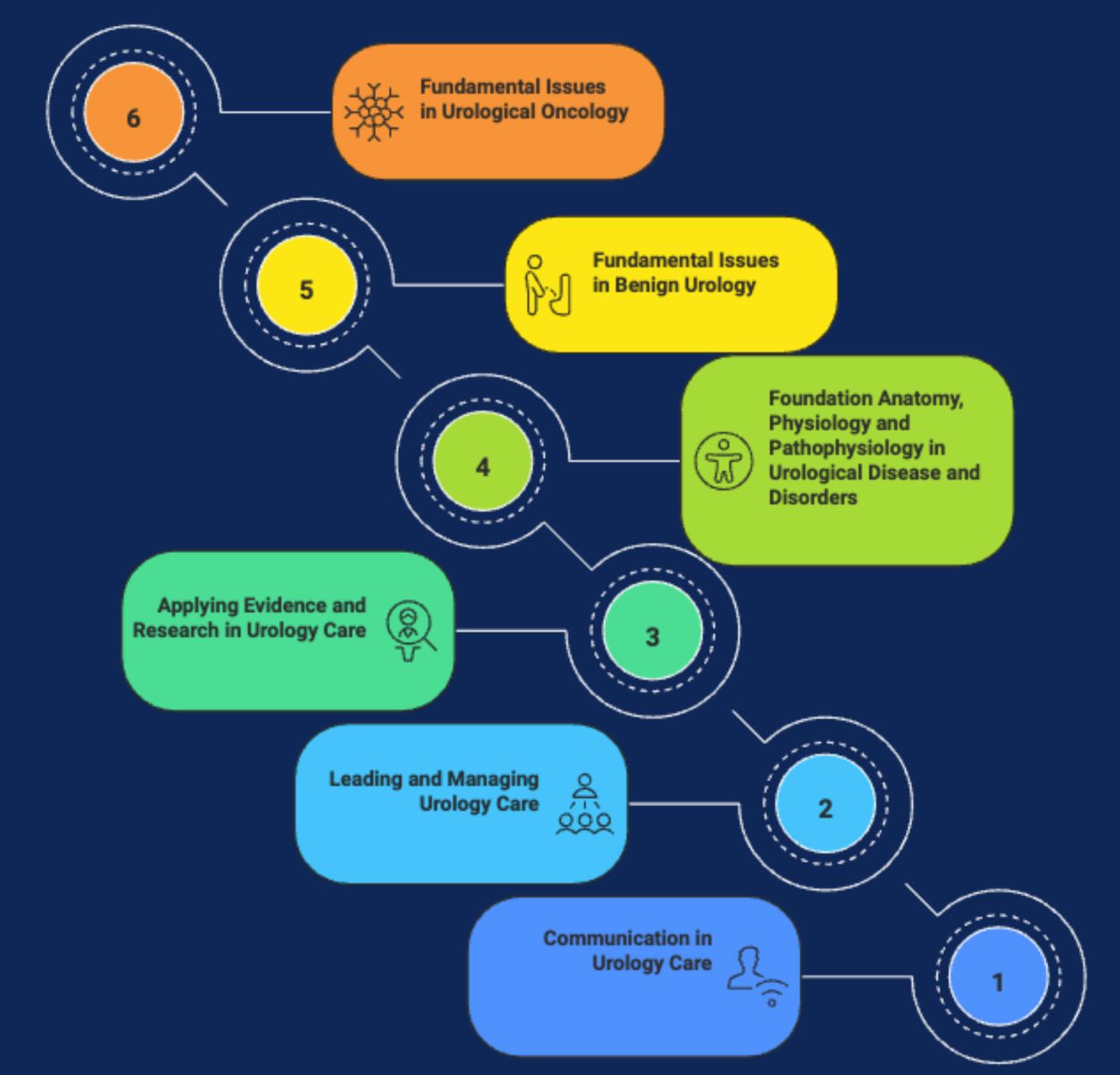The introduction to the document explains why it is needed and how it was created. As far as the content is concerned, following a long process of discussion with urology nurses, urology nurse leaders, association members, educational advisors, and within the leadership boards of the associations, six areas central to EFUNCore were agreed as follows: